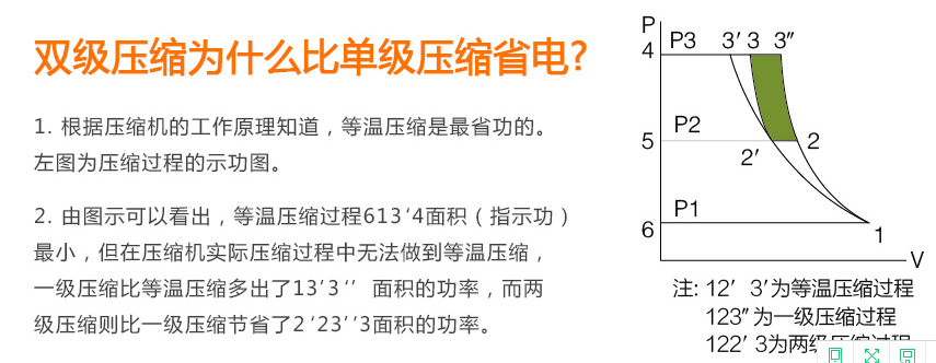 兩級壓縮工頻螺桿式空壓機(jī)省電原因