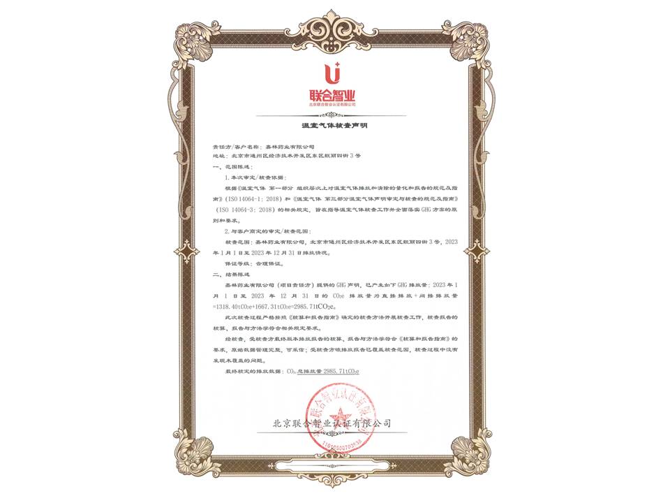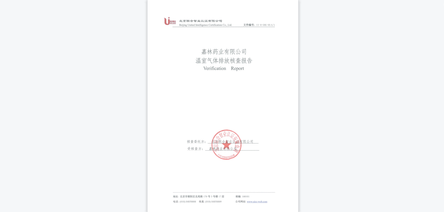 現(xiàn)公示《嘉林藥業(yè)有限公司溫室氣體排放核查報告》,詳情點擊附件。嘉林藥業(yè)有限公司溫室氣體排放...
